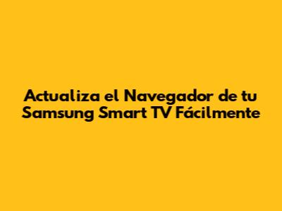 ¡Hola, chicos! ¿Alguna vez te has encontrado con esa frustración de intentar navegar por tu Samsung Smart TV y darte cuenta de que el navegador está un poco... anticuado? Es como intentar correr la última app en un teléfono de hace cinco años, ¿verdad? Pues tranquilos, porque hoy vamos a desglosar cómo actualizar el navegador de tu Smart TV Samsung para que vuelvas a tener una experiencia fluida y sin dramas. No te preocupes, no necesitas ser un genio de la tecnología; te lo explicaré paso a paso para que sea pan comido. ¿Listos para darle un turbo a tu TV?