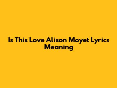 Let's dive into the soulful world of Alison Moyet's "Is This Love" and explore the meaning behind its evocative lyrics. This song, a classic from the 1980s, isn't just a catchy tune; it's a poignant exploration of love, uncertainty, and the emotional tightrope we walk when we open our hearts to someone. Alison Moyet's powerful vocals, combined with the song's heartfelt lyrics, create an experience that resonates deeply with listeners. Understanding the nuances of the lyrics can give you a greater appreciation for the emotional depth of the song.