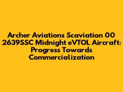 Now, let's talk about Scaviation 00 2639SSC. This might sound like some cryptic code, but it likely refers to a specific prototype, test vehicle, or internal project within Archer Aviation related to the Midnight eVTOL's development. Companies like Archer often use internal codenames and designations for different stages of development, testing, and certification. This helps them keep track of various projects and maintain confidentiality. While the exact details of what Scaviation 00 2639SSC entails might not be publicly available, it's safe to assume that it plays a role in the overall progress of the Midnight eVTOL. It could be related to a specific aspect of the aircraft's design, such as the propulsion system, flight controls, or avionics. It could also refer to a particular set of tests or simulations that Archer is conducting to validate the aircraft's performance and safety. The key takeaway here is that Scaviation 00 2639SSC represents the kind of behind-the-scenes work that goes into developing a cutting-edge aircraft like the Midnight eVTOL. It highlights the meticulous attention to detail, rigorous testing, and constant refinement that are necessary to bring such a complex project to fruition.