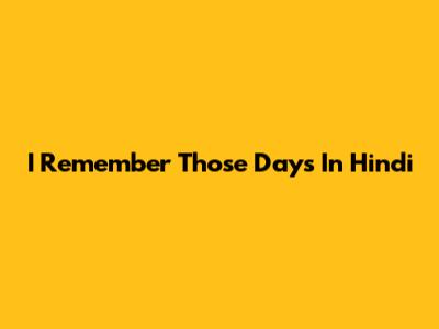 I Remember Those Days In Hindi