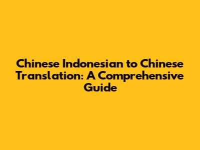 Chinese Indonesian To Chinese Translation: A Comprehensive Guide