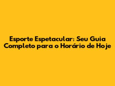 O Horário do Esporte Espetacular: Não Perca o Pontapé Inicial!