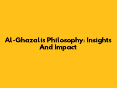 Al-Ghazali's Philosophy: Insights And Impact