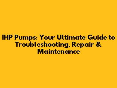 IHP Pumps: Troubleshooting, Repair & Maintenance Guide