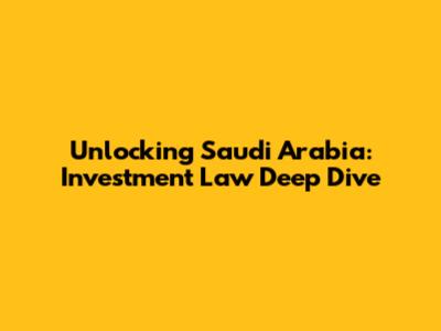 Unlocking Saudi Arabia: Investment Law Deep Dive