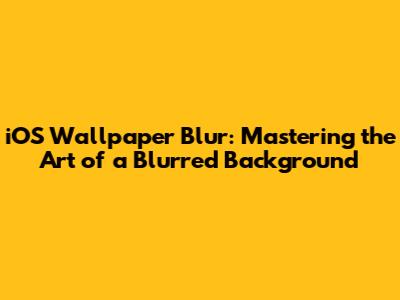 Understanding iOS Wallpaper Blur: What It Is and Why You Need It