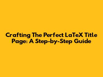 Crafting The Perfect LaTeX Title Page: A Step-by-Step Guide
