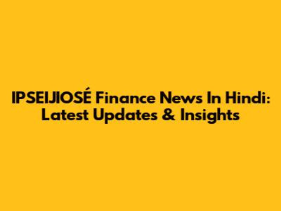 IPSEIJIOSÉ Finance News In Hindi: Latest Updates & Insights