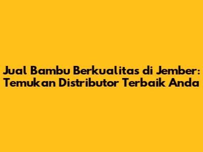 Hey guys! Mencari distributor bambu Jember yang bisa diandalkan? Kalian datang ke tempat yang tepat! Jember, dengan kekayaan alamnya, memang jadi salah satu daerah yang potensial untuk berbagai macam produk, termasuk bambu. Entah kalian butuh bambu untuk proyek konstruksi, kerajinan tangan, furnitur, atau bahkan untuk kebutuhan pertanian, menemukan supplier yang tepat itu kuncinya. Artikel ini bakal ngasih kalian insight lengkap soal gimana caranya nemuin distributor bambu terbaik di Jember, plus tips-tips biar nggak salah pilih. Siap-siap catat ya!