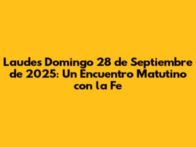 En este domingo 28 de septiembre de 2025, la pr谩ctica de las Laudes se convierte en un faro que ilumina nuestro camino. Nos recuerda la importancia de la gratitud, el perd贸n y la caridad. Nos anima a vivir con alegr铆a y a compartir el amor de Dios con los dem谩s. A trav茅s de las Laudes, establecemos una conexi贸n 铆ntima con nuestro creador, fortalecemos nuestra fe y nos preparamos para afrontar los desaf铆os de la vida con fortaleza y esperanza. Es un momento de recogimiento, de silencio y de escucha atenta. Es la oportunidad de renovar nuestra promesa de seguir a Cristo y de vivir de acuerdo con sus ense帽anzas. Las Laudes son un regalo, una invitaci贸n a la paz y a la alegr铆a que solo la fe puede brindar. Es un tesoro que debemos valorar y atesorar en nuestros corazones.