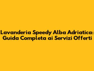 Lavanderia Speedy Alba Adriatica: Servizi E Consigli Utili