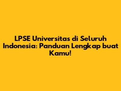 Halo, guys! Pernah dengar soal LPSE Universitas Seluruh Indonesia? Kalau kamu mahasiswa, dosen, atau bahkan staf administrasi di perguruan tinggi di Indonesia, pasti udah nggak asing lagi sama yang namanya LPSE. Singkatnya, LPSE itu singkatan dari Layanan Pengadaan Secara Elektronik. Nah, di artikel kali ini, kita bakal ngupas tuntas soal LPSE yang spesifik buat universitas di seluruh penjuru Tanah Air. Kenapa sih ini penting banget? Gini lho, universitas itu kan institusi besar yang butuh banyak banget barang dan jasa, mulai dari alat tulis kantor, peralatan laboratorium canggih, sampai jasa konsultasi. Nah, semua pengadaan barang dan jasa ini harus dilakukan secara transparan, akuntabel, dan efisien. Di sinilah peran LPSE jadi krusial banget. Dengan adanya LPSE, proses tender atau lelang jadi lebih terbuka, persaingan sehat, dan ujung-ujungnya bisa dapetin harga terbaik buat negara, alias buat kita semua! Jadi, siap-siap ya, kita bakal selami dunia LPSE universitas di Indonesia, mulai dari apa itu, gimana cara kerjanya, sampai tips and trick biar kamu nggak ketinggalan informasi penting.