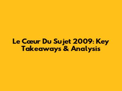 Le Cœur Du Sujet 2009: Key Takeaways & Analysis