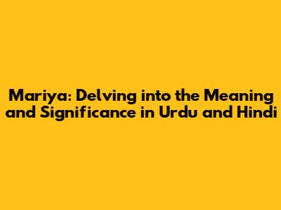 Mariya in Hindi: Exploring the Name's Significance