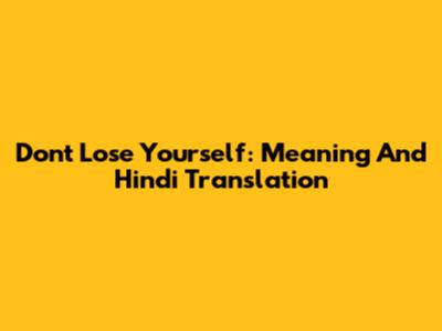 Don't Lose Yourself: Meaning And Hindi Translation