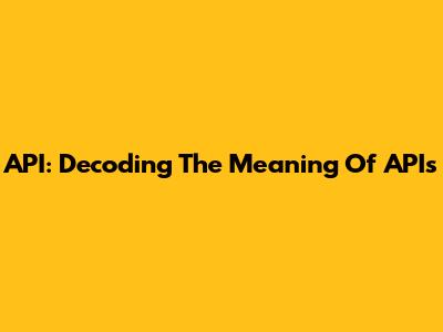 API: Decoding The Meaning Of APIs