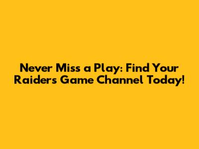 Decoding Today's Raiders Game Channel: Your Ultimate Guide