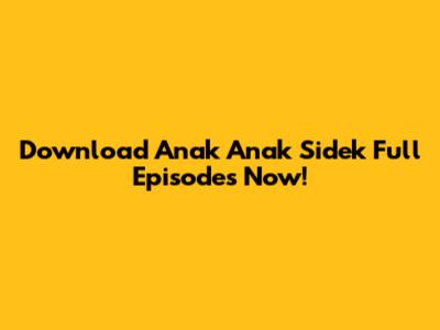 Download Anak Anak Sidek Full Episodes Now!