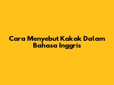 Cara Menyebut 'Kakak' Dalam Bahasa Inggris