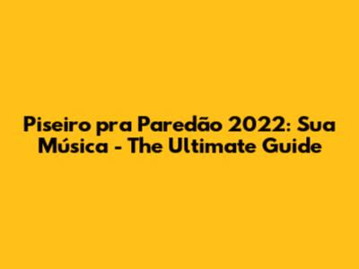 Hey guys! Ready to dive into the electrifying world of piseiro pra paredão in 2022? If you are a fan of infectious beats, pulsating rhythms, and music that makes you want to dance until dawn, then you're absolutely in the right place. In this comprehensive guide, we’re going to explore everything about piseiro pra paredão in 2022, focusing particularly on the phenomenal platform, Sua Música. Whether you're a seasoned aficionado or a curious newbie, buckle up and let's get this party started!