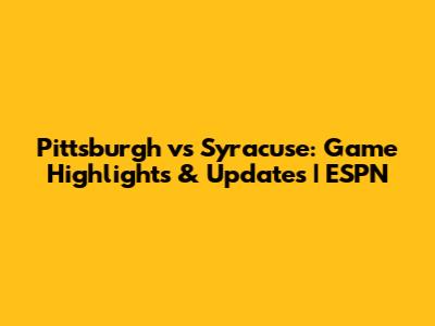 Pittsburgh Vs Syracuse: Game Highlights & Updates | ESPN