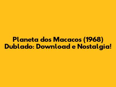 Planeta Dos Macacos (1968) Dublado: Download E Nostalgia!
