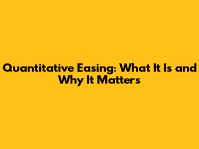 Quantitative Easing: What It Is And Why It Matters