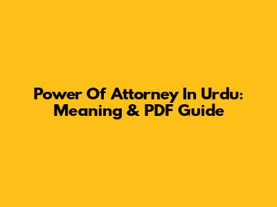Power Of Attorney In Urdu: Meaning & PDF Guide