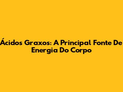 Ácidos Graxos: A Principal Fonte De Energia Do Corpo